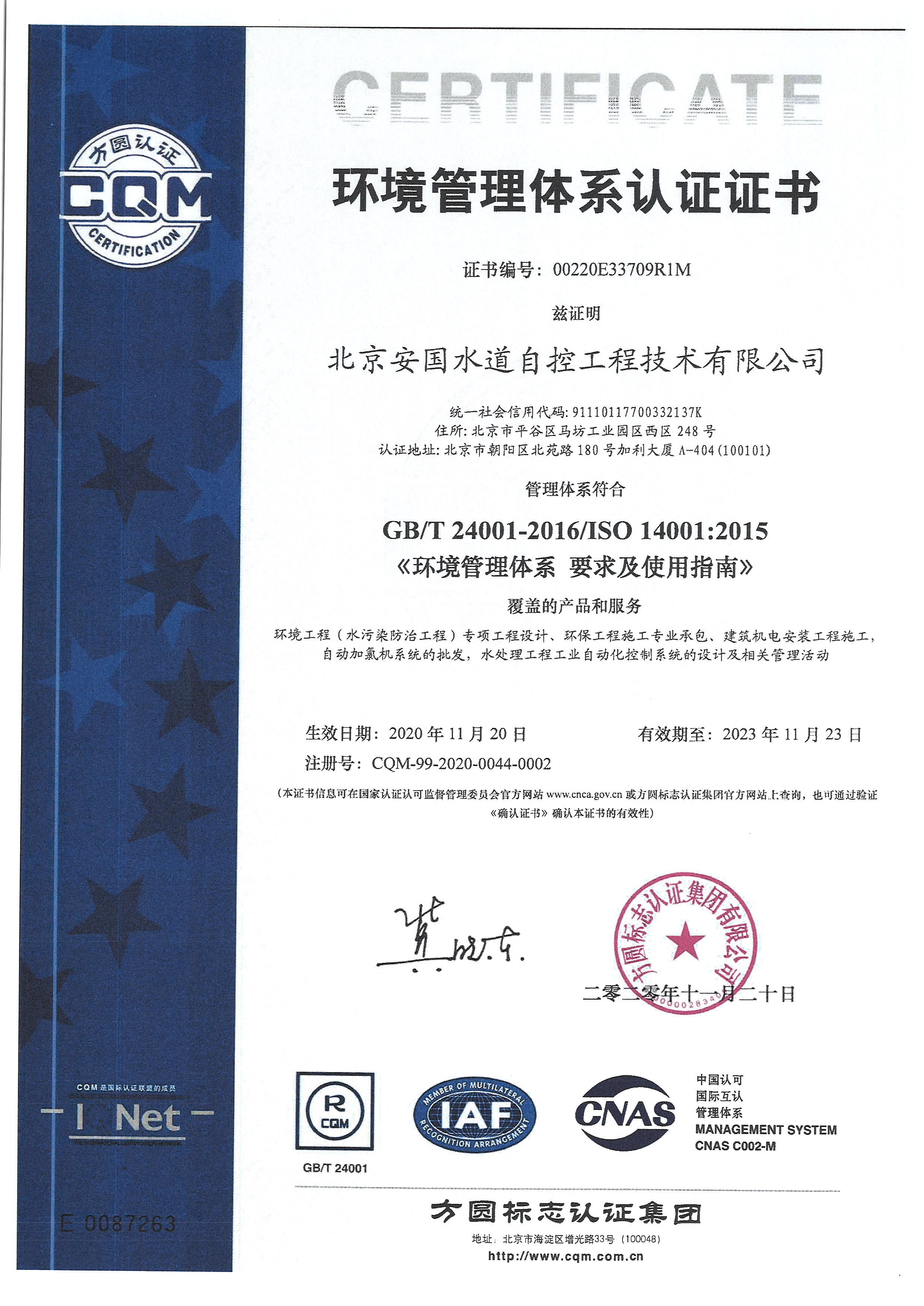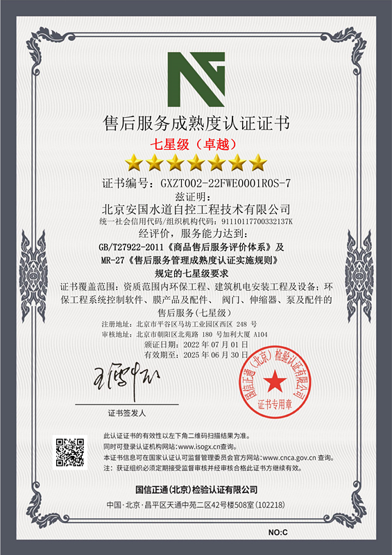北京安國(guó)水道自控工程技術(shù)有限公司2015年入駐中國(guó)給水排水品牌委員會(huì)